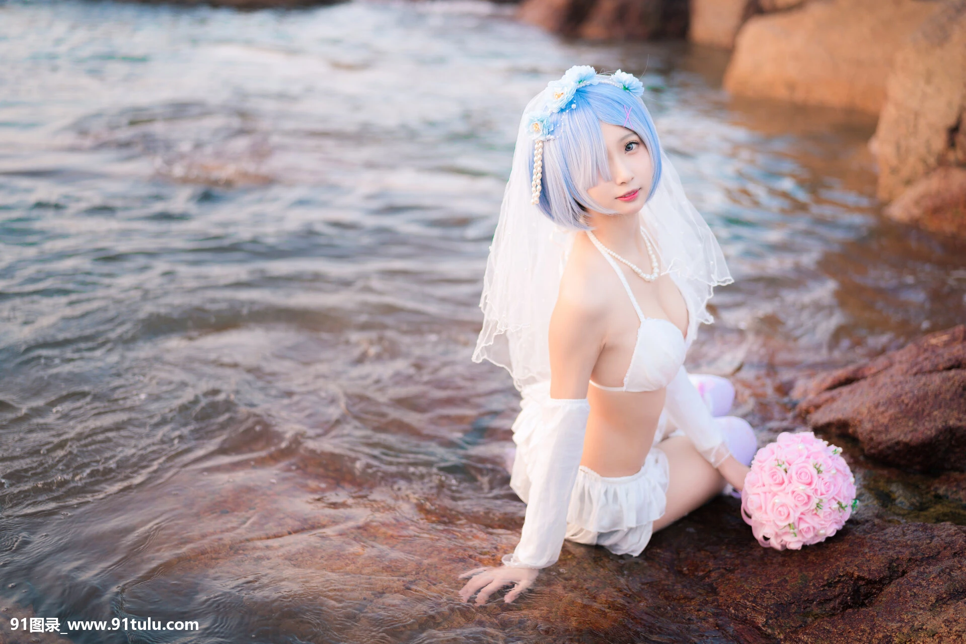 Cosplay 橙子喵 – 蕾姆花嫁 ゼロから始める异世界生活 [17P][アイフォン 8 写真 機能]