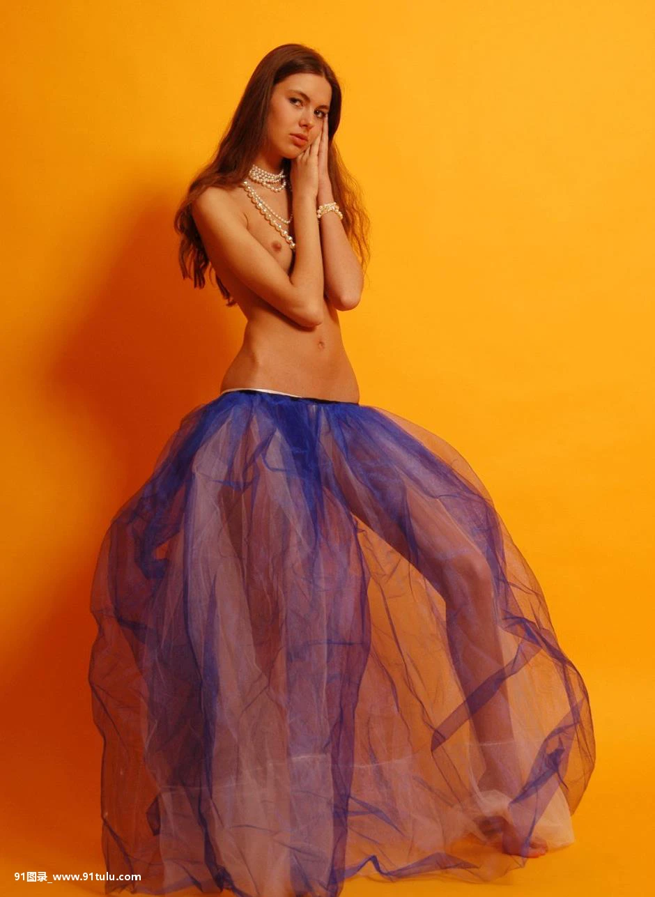 穿着蓝色纱裙的纤瘦模特 [24P][写真 ハレーション 補正]